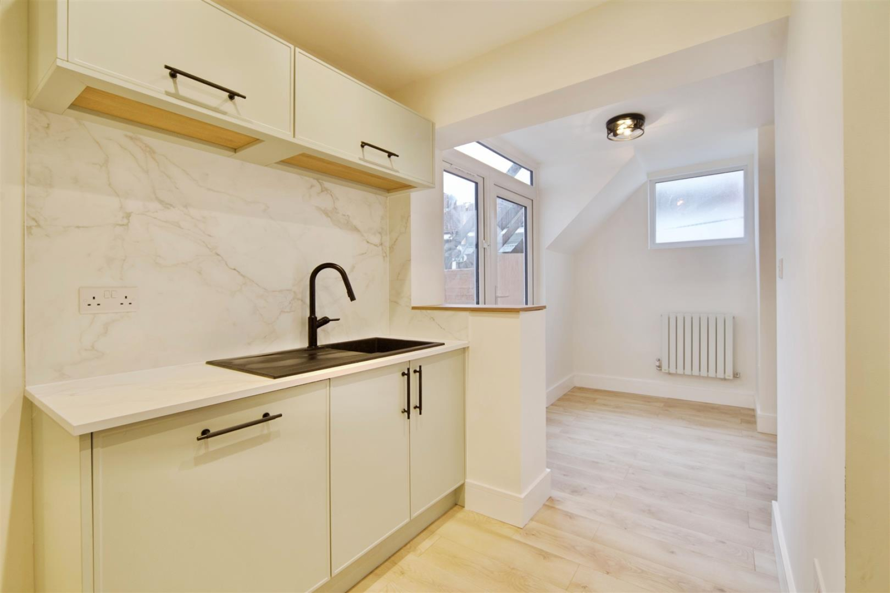 Light-filled reception areas flow effortlessly, complemented by well proportioned bedrooms and a contemporary bathroom finished to a high standard. A private garden offers a peaceful outdoor retreat, while the rare benefit of an own driveway and garage adds exceptional practicality.
